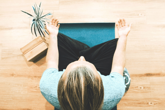 Important : On rehausse son bassin en plaçant une brique de yoga, un petit coussin ou une serviette roulée sous ses fesses. Cela va permettre à la colonne de rester bien droite en y mettant le moins d’effort possible. Epaules détendues, mains relâchées sur les genoux, menton très légèrement rentré vers la poitrine. On ferme les yeux, regard dirigés vers le troisième œil (le point entre les deux sourcils) pour éviter une tension oculaire inutile. On contracte légèrement le périnée et on aspire le nombril vers la colonne vertébrale. On fait attention de ne pas s’affaisser vers l’avant ou l’arrière, et surtout on n’oublie jamais de respirer. Cela fait beaucoup de choses à mettre en place au début, mais très rapidement cela devient naturel et on n’y pense même plus. Cerise sur le gâteau, notre posture s’améliore au quotidien.